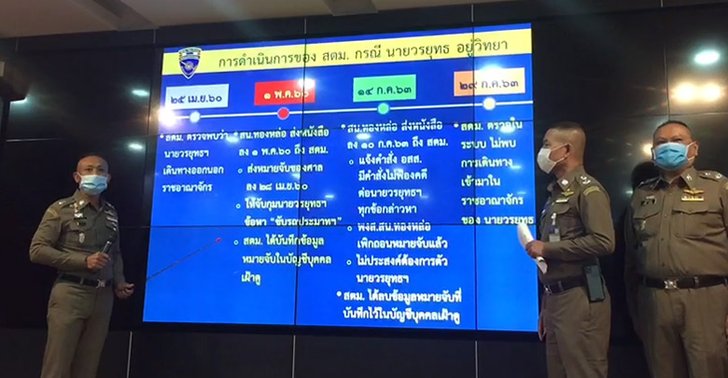 และจนถึงวันนี้ 29 กรกฎาคม 2563 สตม. ตรวจสอบในระบบ ยังไม่พบการเดินทางเข้ามาในราชอาณาจักรของนายวรยุทธ ไม่ว่าจะเป็นช่องทางใด ได้แก่ บก เรือ อากาศ